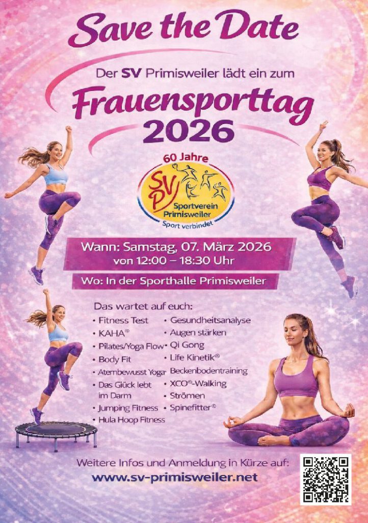 Dann sei dabei beim Frauensporttag 2026 des SV Primisweiler und gönn dir einen Tag nur für dich – mit Power,